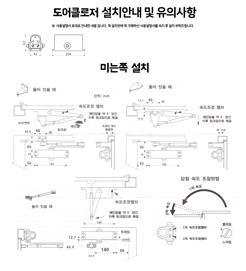 • 도어클로저 도어체크 KING KAN K-PLUS 방화문 현관문 K630
