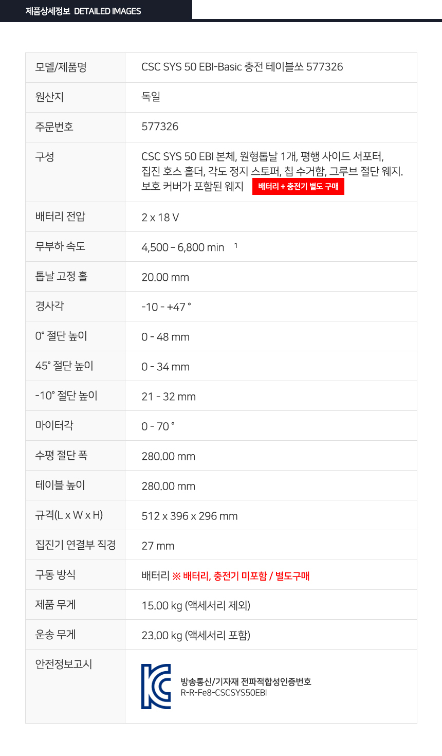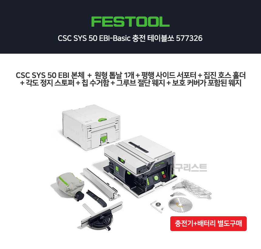 페스툴 CSC SYS 50 EBI-Basic 충전 테이블쏘 577326