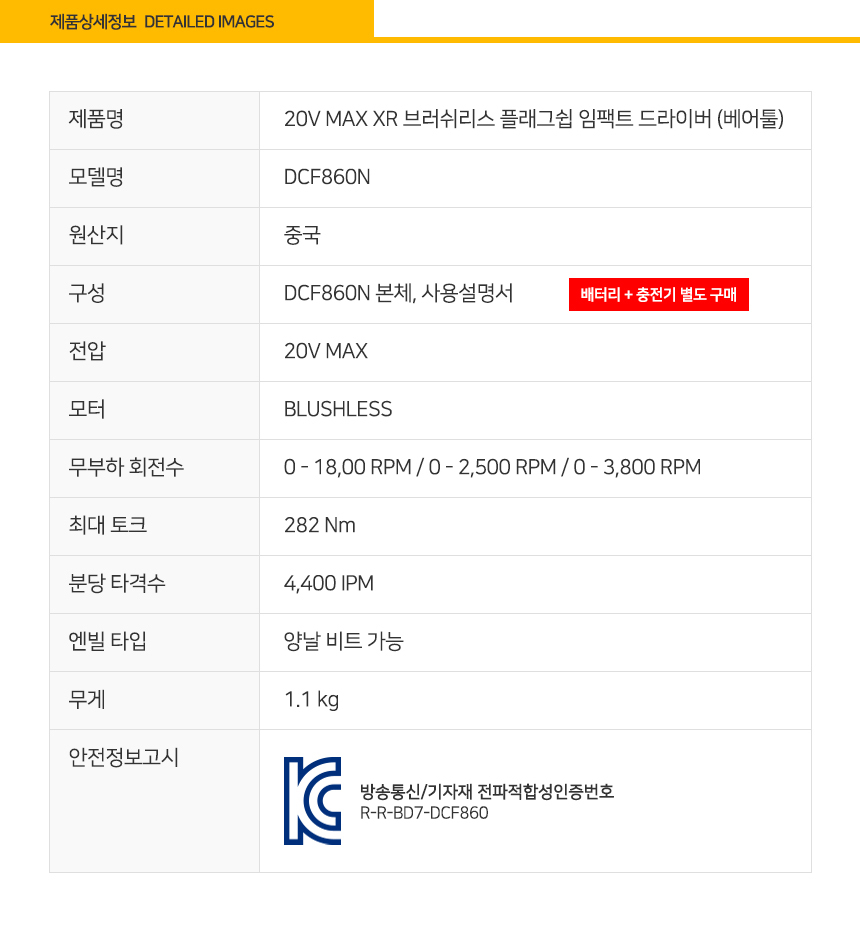 • 디월트 DCF860N 20V MAX 브러쉬리스 플래그쉽 임팩트 드라이버 (베어툴)