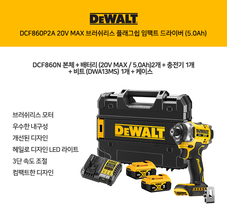 • 디월트 DCF860P2A 20V MAX 브러쉬리스 플래그쉽 임팩트 드라이버 (5.0Ah)