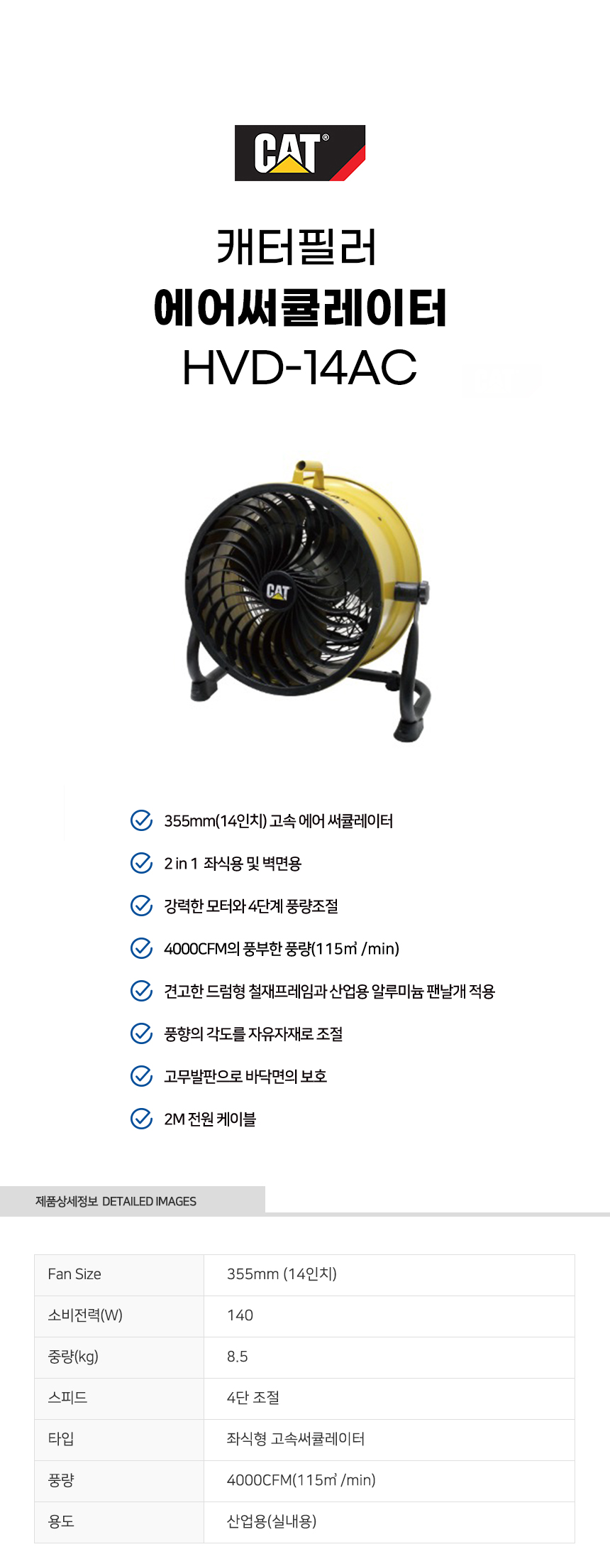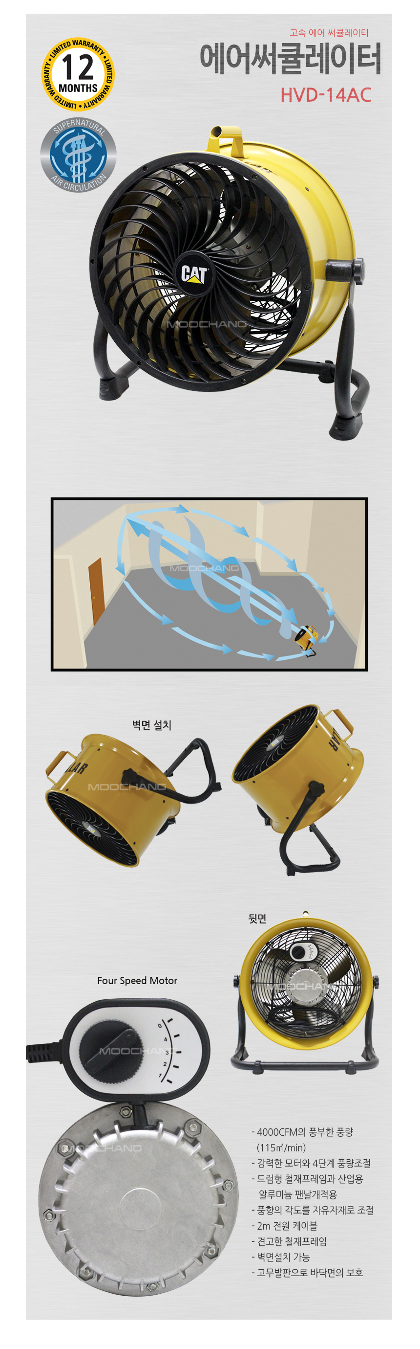 이미지 확대보기캐터필러 고속 에어 써큘레이터 산업용 공업용 선풍기 HVD-14AC